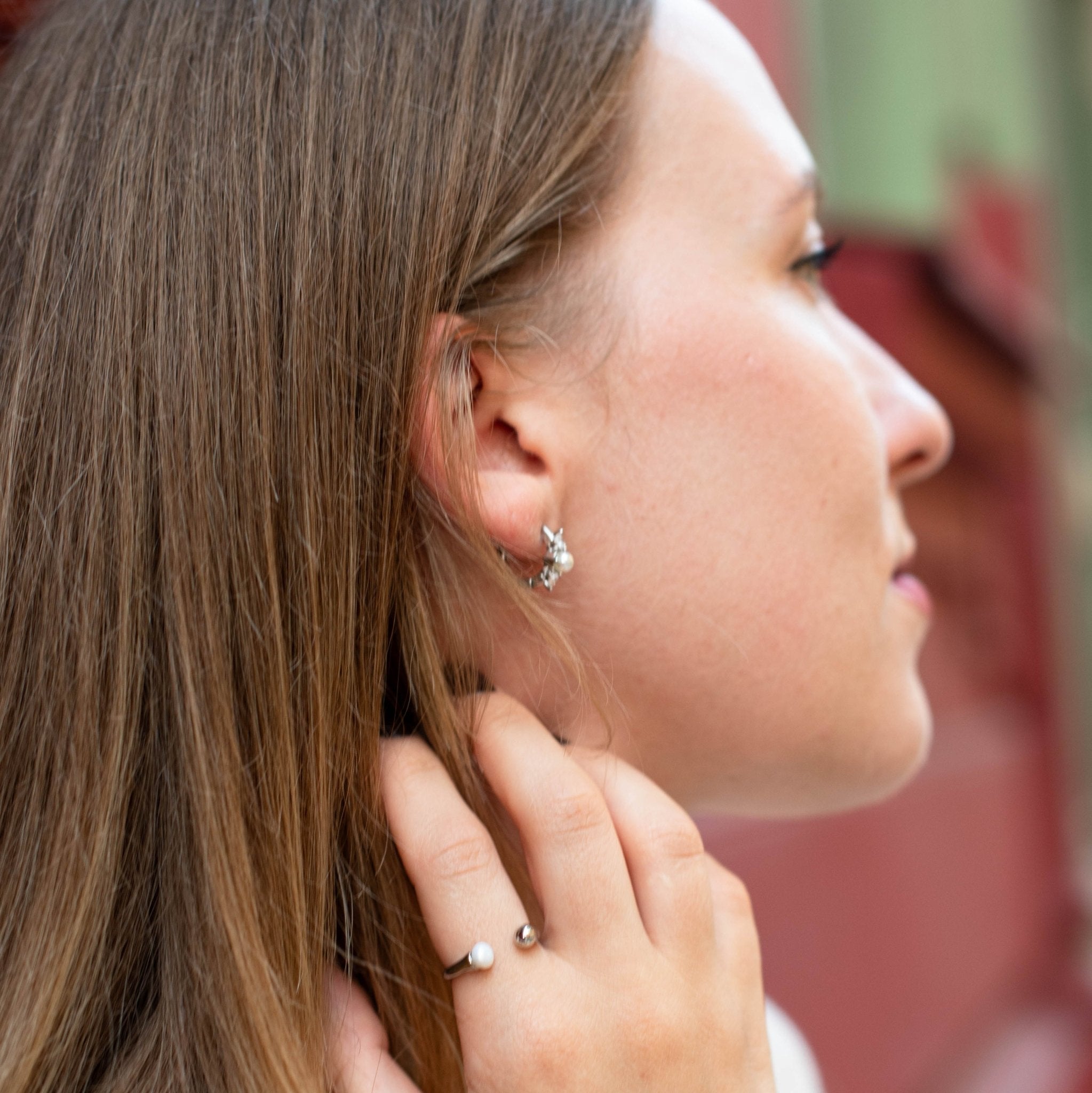 BOLD PEARL náušnice kombinují moderní, zahnutý design s velkou syntetickou perlou, která elegantně uzavírá jejich siluetu.