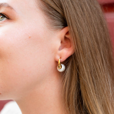 BOLD PEARL náušnice kombinují moderní, zahnutý design s velkou syntetickou perlou, která elegantně uzavírá jejich siluetu.