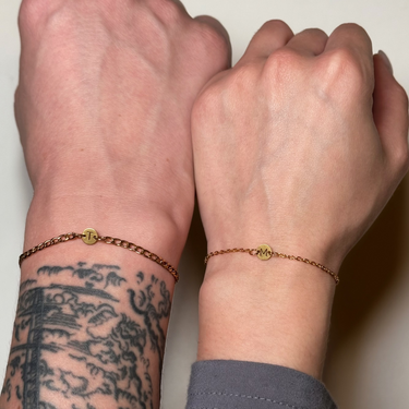 Každý náramek zdobí medailonek s ručně raženým písmenem – symbolem vás dvou.