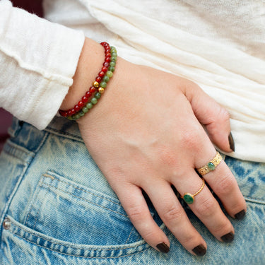 Materiál: přírodní minerál zelený jadeit, pozlacená šperkovská ocel. PVD zlacení zaručuje, že povrch zůstane krásně lesklý a nepoškozený.